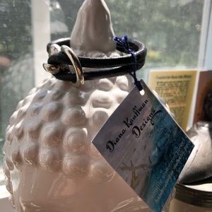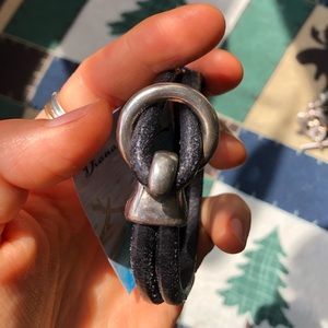 New with tag black leather buckle bracelet size small. Very cool piece handmade by a local artist in Sewickly. Small fits up to 6” wrist pics show condition accurately