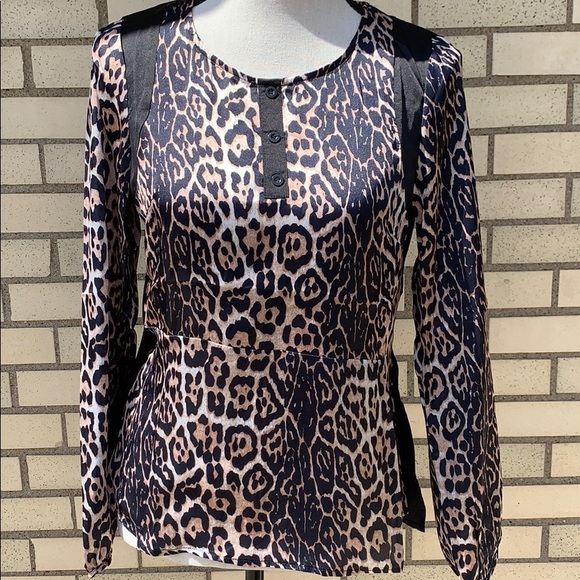 *Pretty black cheetah print top has lots of detail with the scoop neckline, the long sleeves, the the three buttons down the front, the hidden back zipper closure, the small open areas on the back & the stunning design on the back of the top