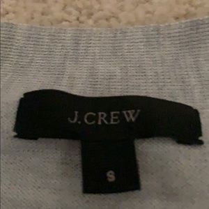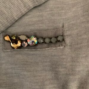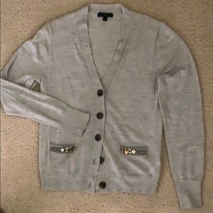 This cute jcrew cardigan is heather gray v-neck button down with rhinestones on the trim of each picket.