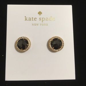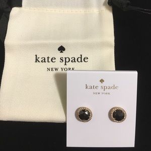 Kate Spade pave crystal halo stud earrings. New in package. Black and gold tone earrings highlighted by crystals. Post backs. Dust bag included. 100% authentic.