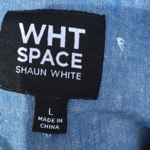 WHT Space Cotton & Linen Bird print Shirt size L , front left chest pocket , button down collar, great condition , jade elbow patch.