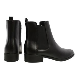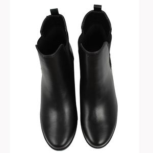 Always trendy Chelsea short boot featuring round toe, faux leather, pull on style, and heel 1 1/4". Model is a size 7 and a size 7 fits her perfectly.
