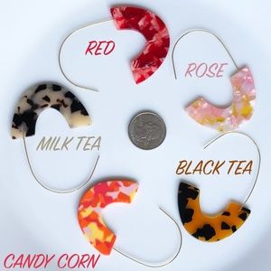 Keywords: drop, summer, bright, geometric, long, large, U shape, hoop, hoops, colorful, modern, trendy, marble, round, flat, disc, geo, tortoise, resin