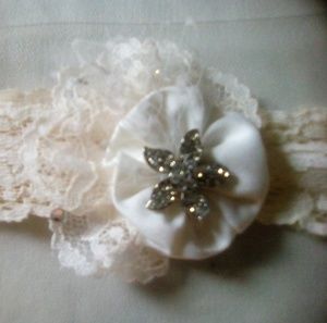 Beautiful vintage Ivy Lane lace wedding garter with rhinestones. One size.