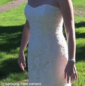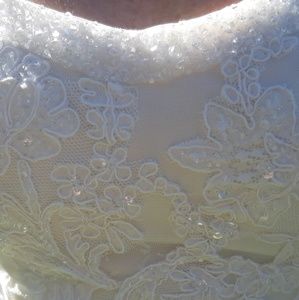 This was not my wedding dress, but I put it on for the pictures. It is not a good example of it fitting the right body.