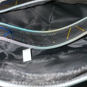 @miakoolcat I added some pictures to show the inside. The pockets in the front are lined, the back pocket is partially lined. I’m not sure on the material. Feels like a PU or patent leather kind of material.