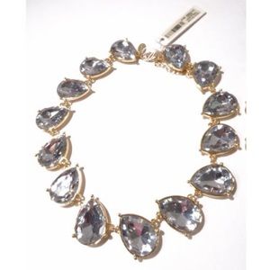 Ann Taylor Metallic & Blue Crystal Teardrop Short Statement Necklace.