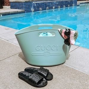 My Closet Rocks Editor's Notes: This authentic versatile Gucci tote is perfect for the pool, to carry any large items, or even for an aesthetically pleasing storage bin!