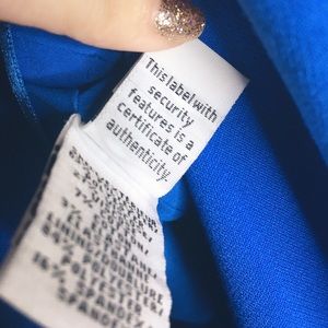 Bodycon style with ruching on one side of the waist. Sleeveless. V-neck. Midi length. Beautiful bold blue color. Zipper on the side. Material has some stretch to it. Size 2 and in excellent condition.