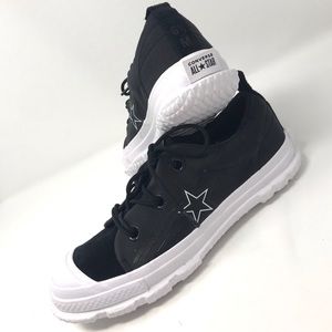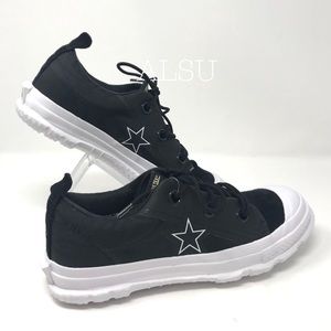 Brand new with box, no lid. Price is firm! No trades. Converse gets ready to the cold season and teams up with GORE-TEX® releasing a special capsule collection which updates its most iconic silhouettes. The One Star MC18 Ox Sneakers draws inspiration from the classic trail boots and feature Gore-Tex® layered upper, thick lacing system, gusseted tongue, visible sizing on heel tab, bold rubber outsole. Extra pair of laces included.