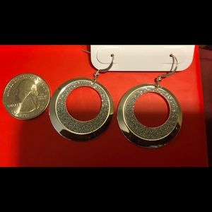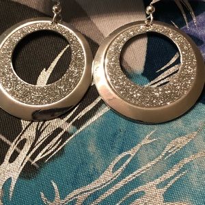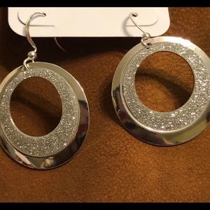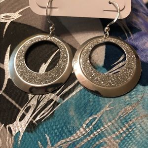 Hypo Allergenic. Brand New. Silver tone circular drop earrings with a hint of bling glaze. Great for the weekend fun😀