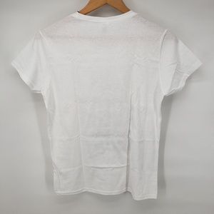 Great shirt reads I CAN'T ADULT TODAY love this tee. They are fitted tee the cover photo is of a small. The picture hanging up is a medium. Printed in the USA shirts are from Honduras.