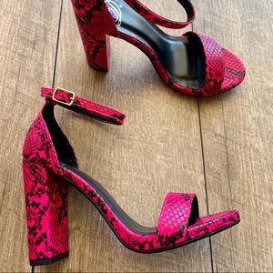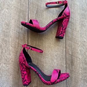 Delicious Neon Pink Python Ankle Strap 4” Heel sandal