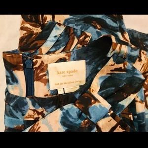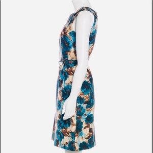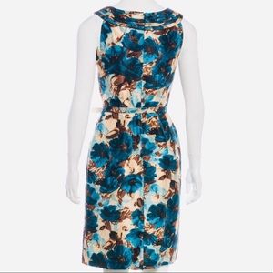 Beautiful silk dress in a mesmerizing blue, tan and brown watercolor floral print. Attached matching belt (is also detachable so can be used on other dresses, too, if you choose!)