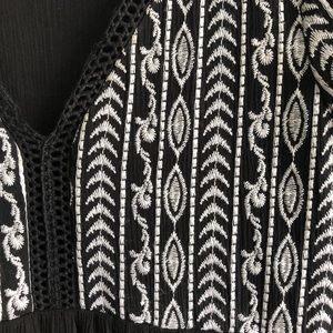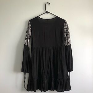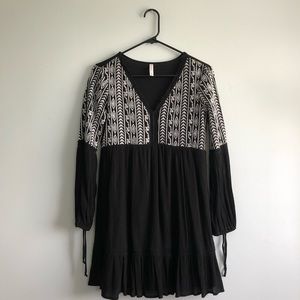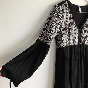 Xhilaration Sundress. Size XS. Black with white embroidery along front and sleeves. Long sleeves with ties on the end. Babydoll style dress. Good condition.