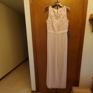 Could be used for a formal event, bridesmaid, wedding guest. Dress is beautiful and brand new with all tags! Color is blush.I have 2 size 10 and a size 16 they were bought for a wedding and can't be returned. My loss your gain!