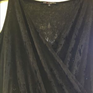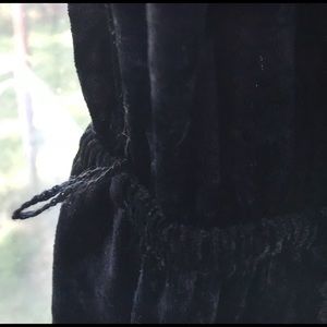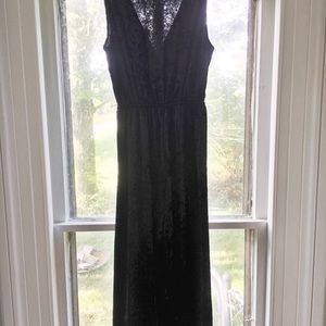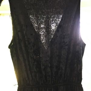 The window shots don’t do this justice! Bought new and worn once but I can’t find the belt that came with it. Layered plunging v neck make this a sexy little number that is so fun to accessorize. The pants are wide leg and midi length, perfect for showing off statement heels. Lots of stretch to this waistband and fabric!