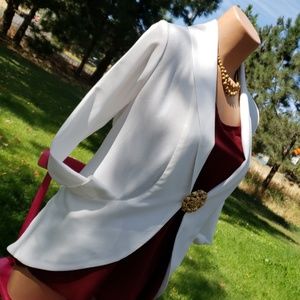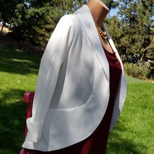 This is awesome hailo women's extra small Harlow $ Graham White business cardigan or blazer. It has a very cool design to it with pockets on each side and 3/4 cuffed sleeves. It's in good used condition. I did notice 3 little pills on the back. Price to sell. I am offering a 20% discount on bundles of ANY two or more items. Thank you for stopping by!