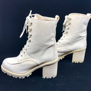 KELIAN STUDIO Off White Canvas Laced Combat Boots
