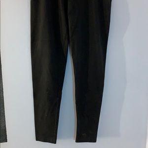 Black yoga pants with pink waist band. Pink logo with sequins. Fitted at the bottom. Worn 1-2 times