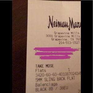 New with box size 38! Perfect every day flat! Can’t go wrong with balenciaga flats! Message me if you have any questions bundle and save! Originally bought from Neiman Marcus! Took a picture of part of my transaction that day. Won’t take full picture or include receipt due to personal information