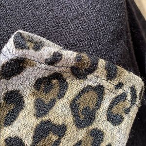 *Darling black lightweight knit top has lots of detail with the leopard print on the sleeves, the leopard print cowl neck & the bottom front twist design