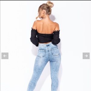 🖤BRODERIE LACE UP FRONT PUFF SLEEVE CROP TOP🖤