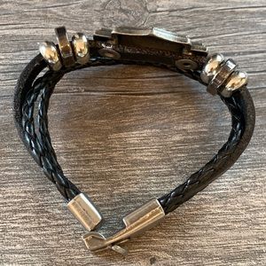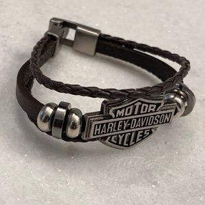 7” Harley Davidson Unisex Leather Bracelet Available In Black
