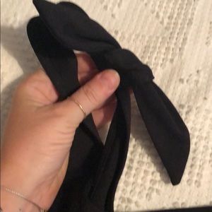 Black stretchy free people body suit. Ties are large and removable/adjustable- easy to remove, and they can slide up or down the sleeve for placement. Tried on- and tags removed but never fully worn out. Great condition.