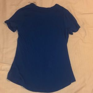 Blue t shirt white lettering. 100% cotton. Approx 16” across 23.5” length. NWT