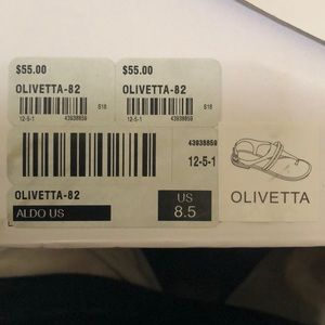 Never worn. Box included. Beautiful shiny gold with Rose 🌹 gold sequined embellishments across top. Gold trimmed around foot and heel. Adjustable strap around back of ankle. Thong style.