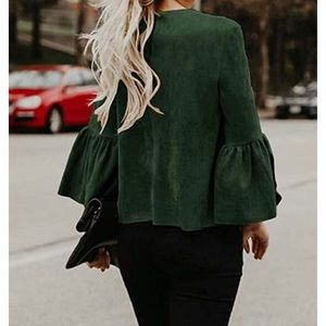 Green Faux Suede Bell Sleeve Blouse