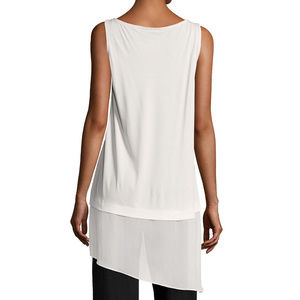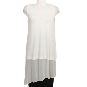 Done in stretch silk jersey, this sleeveless tunic features bateau neck and asymmetrical sheer silk hem.