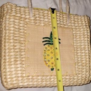 Xharation Corn Husk Pineapple Design Purse With yellow Gingham Lining.