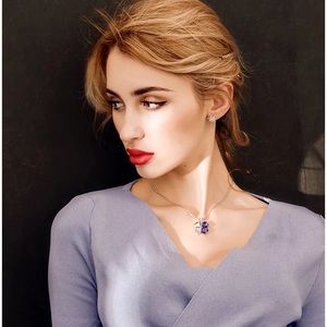 Good luck Green Four Heart Clover necklace made with Swarovski cut crystal elements. See pictures for more details on this type of crystals. Crystals are green and clear color. Rhodium plated necklace 16in long.