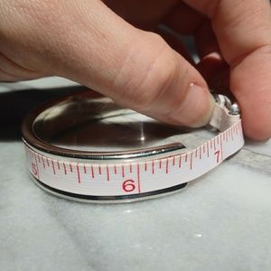 Oval bracelet inner measurement side to side is about 2 1/8" The opening is about 1" around is about 6 1/2"