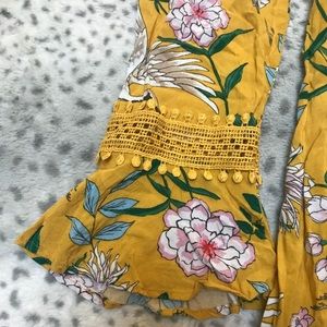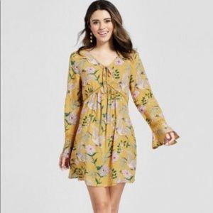 Long sleeve mini dress. Floral print with cranes. Ties in the back and cinches at the chest. Only worn once, in excellent condition!