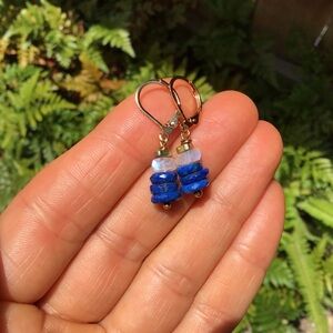 New earrings. Natural gemstones 24k gold plated Leverback wires Natural genuine blue cobalt color lapis and rainbow hue moonstone Really pretty color Earrings 1.2l