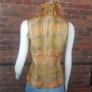 Doncaster Women's Top Brown Orange White Snakeskin Print Ruffle High Neck Sz 4
