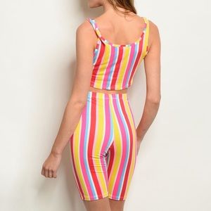 Sleeveless striped top and biker shorts set, NEW!