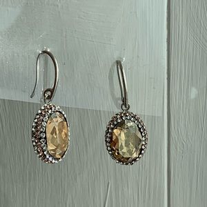CITRINE crystal pave rhinestone oval 925 earrings