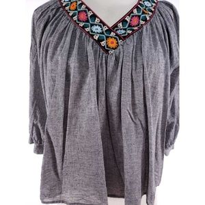 Embroidered, vneck, striped.