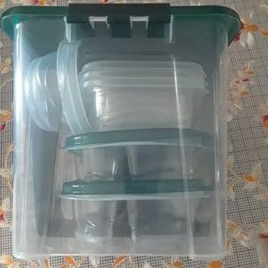 Brand new. No price tags....It contains 44 PC... ( BPA ) Free.... Microwave Freezer and Dishwasher Safe. 22 Bases and 22 lids. 2 pc. 1.75 Gallons./ 7 QT / 6.62 L.....4 pc 3 divided rectangle 8.97 in.× 6.18 in.× 2.24 in... 4 pc. Divided square 6.69 in × 6.69 in × 1.97 in.... 4 pc 3.7 Cups/ 29.6 OZ/ 875 ML..4 pc 1 Cup / 8OZ 236 ML... 6 pc. 1.1 Cups / 8.8 OZ / 260 ML 20 pc .. 0.5 Cup / 4OZ / 118 ML... Good for Christmas present.... I have 5 of them