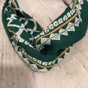 Knotted Boho Headband Green White Mixed Pattern