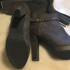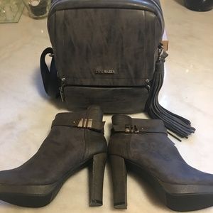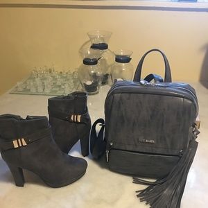 'Steve Madden' Charcoal Grey Leather Back Pack, (gently used). ' Kadi Maya sz.9 ' Charcoal Grey Faux Suede Ankle Boots,(New w/tag).