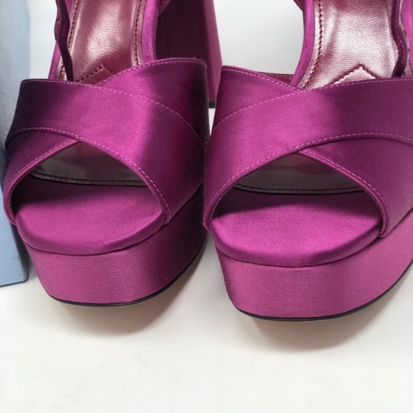 Brand new in box heels from Prada! These gorgeous heels are sold out in stores and retail for $750+ tax. They are rare and hard to find! The size is a 42/ 12B and like most Prada shoes they do run small. It would most likely be the a good fit for someone whose shoe size is 10/10.5 US. They are a satin finish.