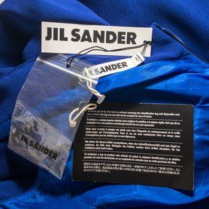 Pictures donโt do it justice. ๐ incredible tailored straight dress by Jil Sander. Can wear like blouson w pencil skirt. NWT.