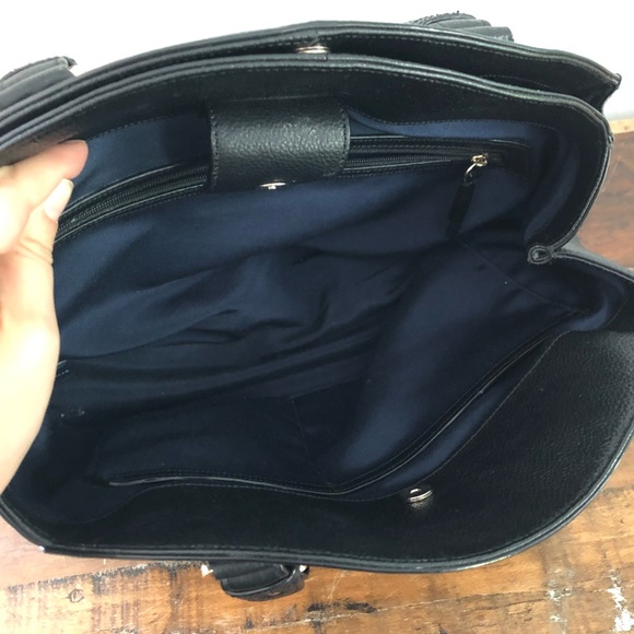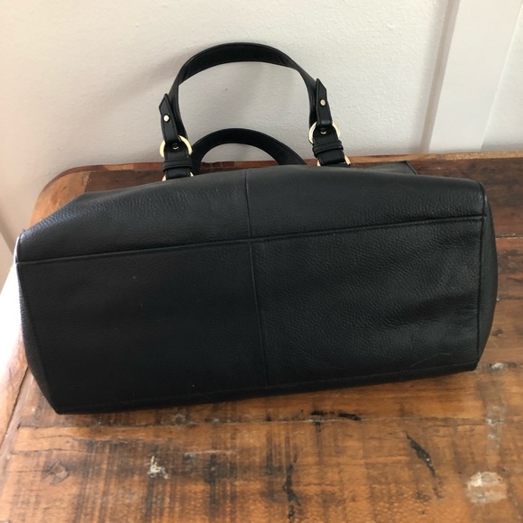 In fantastic used condition. Genuine leather outer is in great shape, has a small spot on backside that isn’t very noticeable, I have not tried cleaning it. Bottoms and corners are in amazing shape. Liner has no marks or stains. Missing crossbody strap. All hardware is functional. 13.5” x10” x6”