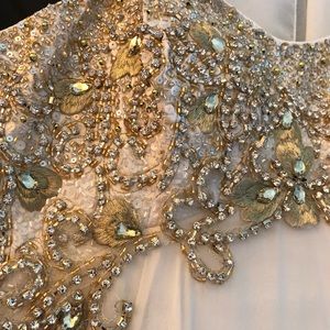 It’s really beautiful. Padded bra area and a zip up back. All of the beading is still perfectly attached.