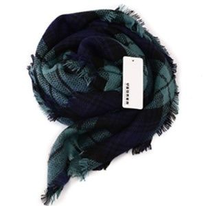 Fall Color Navy Tartan Blanket Scarf Wrap Shawl